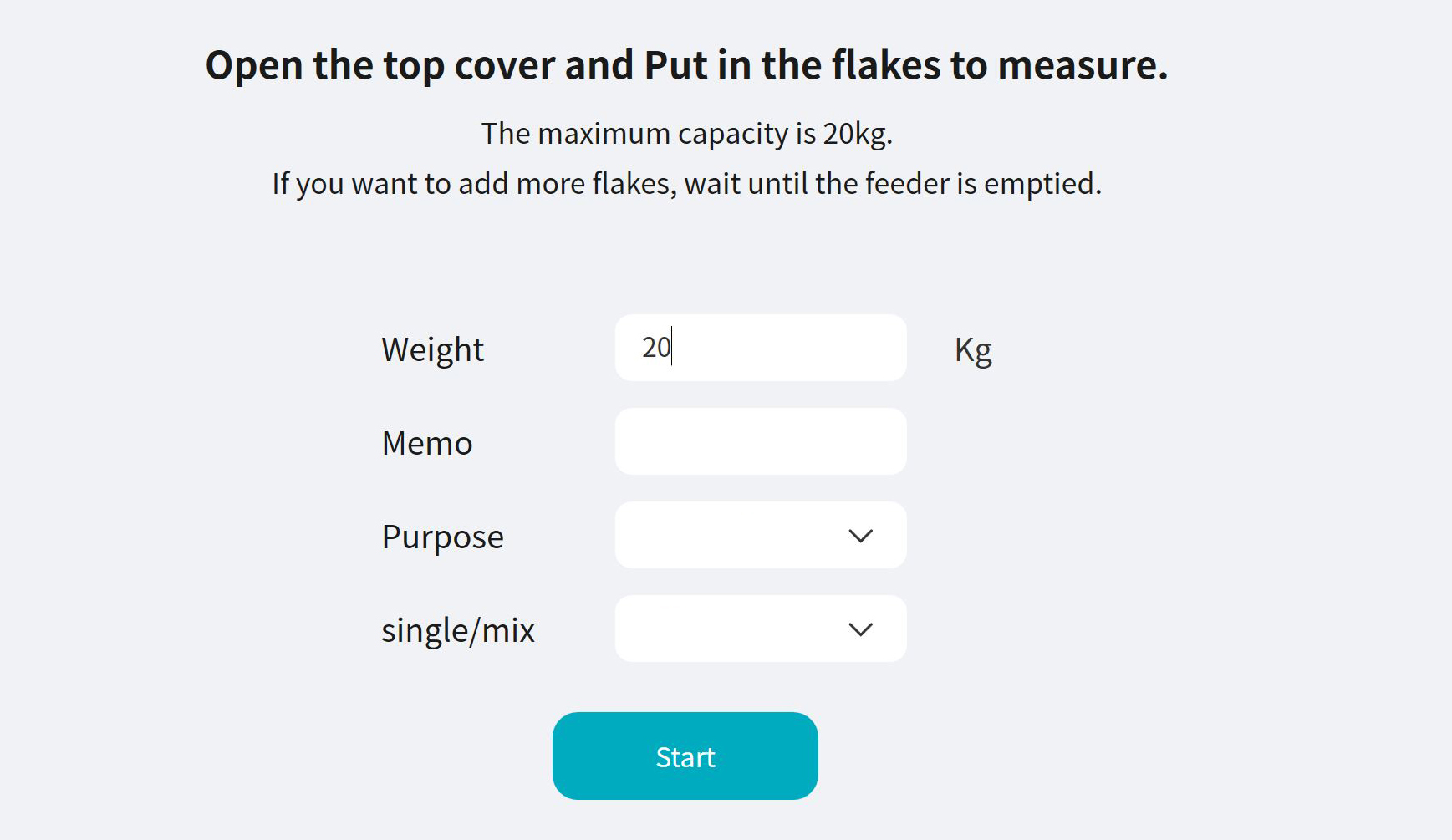 After connecting the PuryChecker to the PC, open the feeder and input flakes for testing.