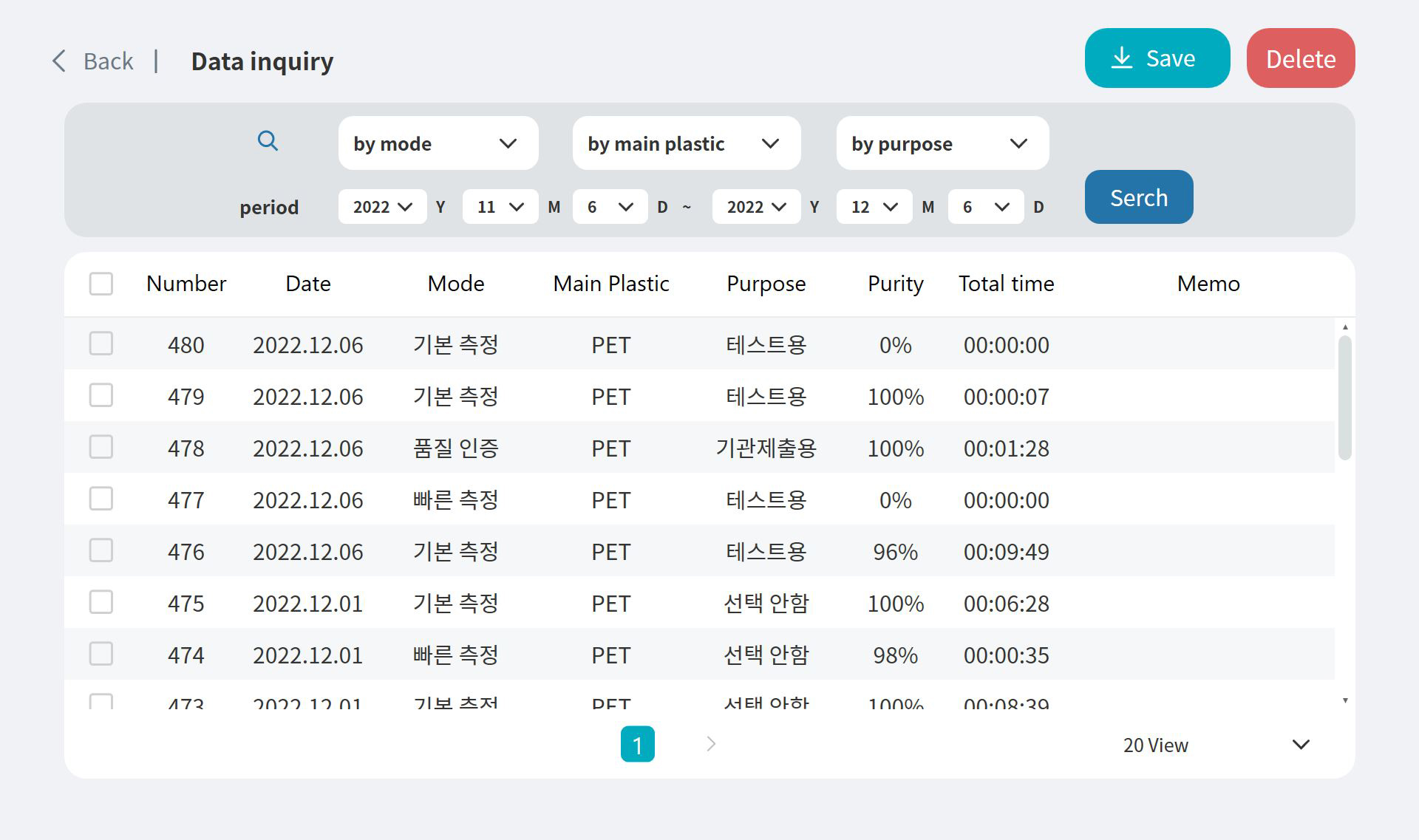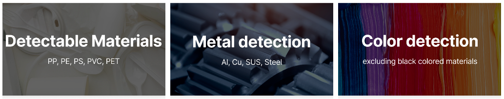 Able to check up to 20 kg per test, the test determines 5 plastic types (PP,PE,PS,PET,PVC) on a standard basis. However, with added functions, metal types (AI,Cu,SUS,Steel) and color values (RGB) can be determined as well.